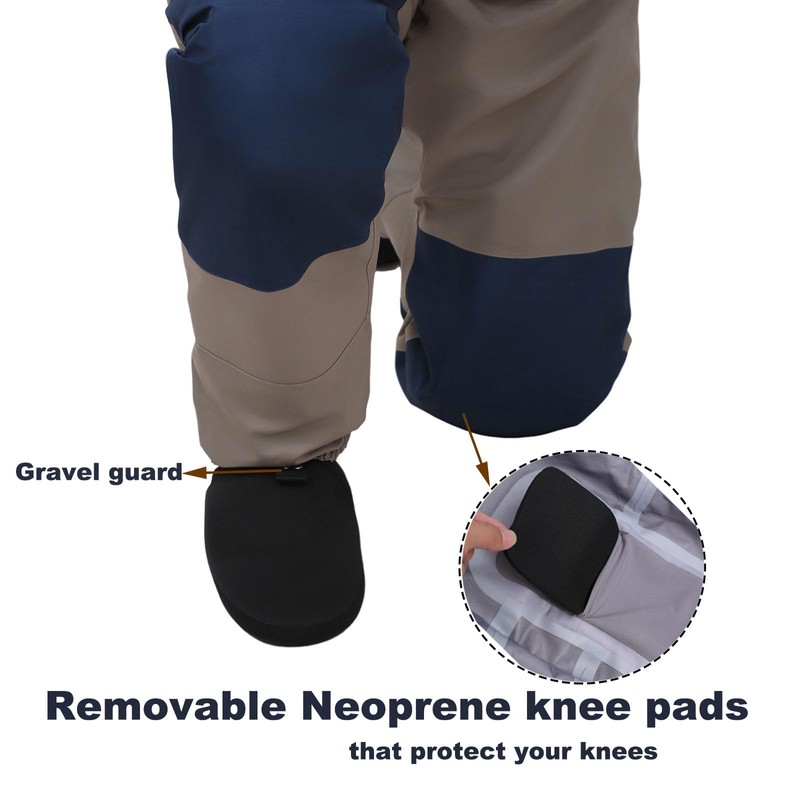 - GRAVEL GUARDS:Gravel guards with boot lace hooks can be used with fishing shoes to prevent gravel from entering the shoe and scratching the feet. Fishing Waders have a removable neoprene gasket that protect your knees.