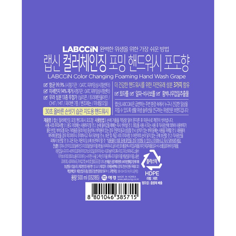 Rapsin Color Changing Grape Hand Wash Main Product 500ml x 1 / 랩신 컬러체인징 포도 핸드워시 본품 500ml x 1개