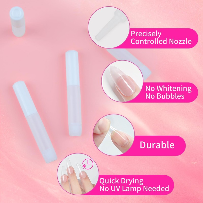 • No-UV Super Nail Glue: Dries in seconds without UV/LED lights, making it ideal for DIYers and on-the-go use. Super strong glue for acrylic nails, press-on nail, tips, nail charms, or repairs, even for beginners.