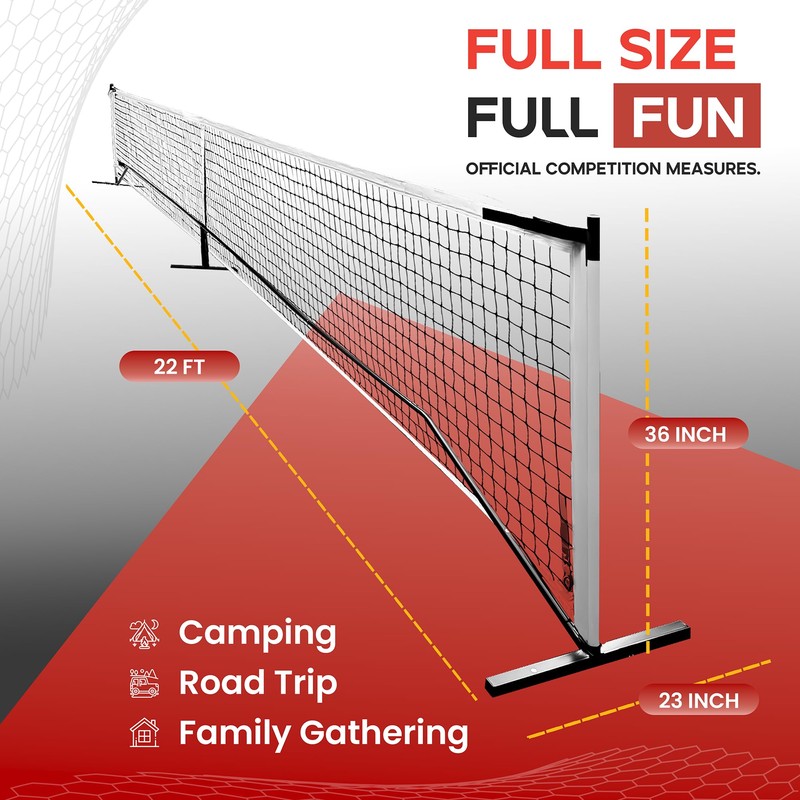 - Versatile Gameplay: Adaptable to any surface, this pickleball net portable outdoor equipment we provide a smooth, professional playing experience. Itโs ideal for recreational fun or competitive challenges.