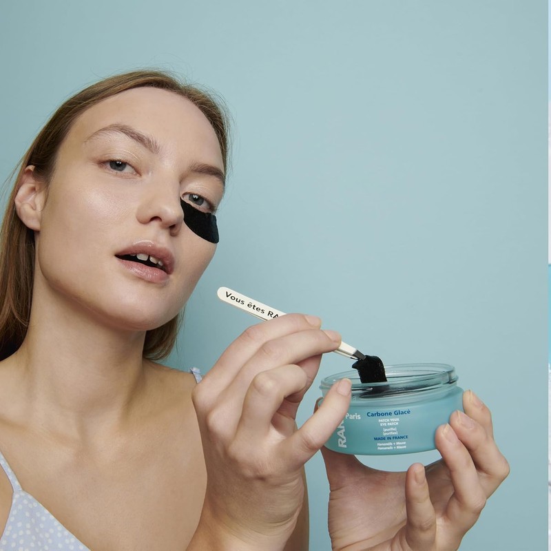 • Carbone Glacé Eye Patches - RARE Paris Carbone Glacé under eye patches clean the skin deeply and gently, removing impurities while tightening the skin and refining the texture. Formulated with Hamamelis and Mallow, say goodbye to black dots, spots and dull under eyes.