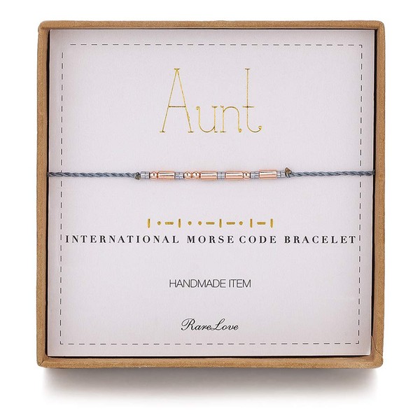 RareLove Aunt Morse Code Bracelets Best Aunt Christmas Gift Women Rose Golden Beads Grey String Bracelet