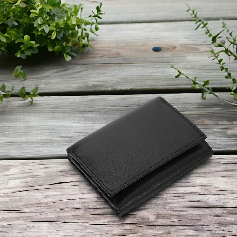 RAS Mens RFID Blocking Compact Genuine Leather Small Trifold Wallet 185 Black