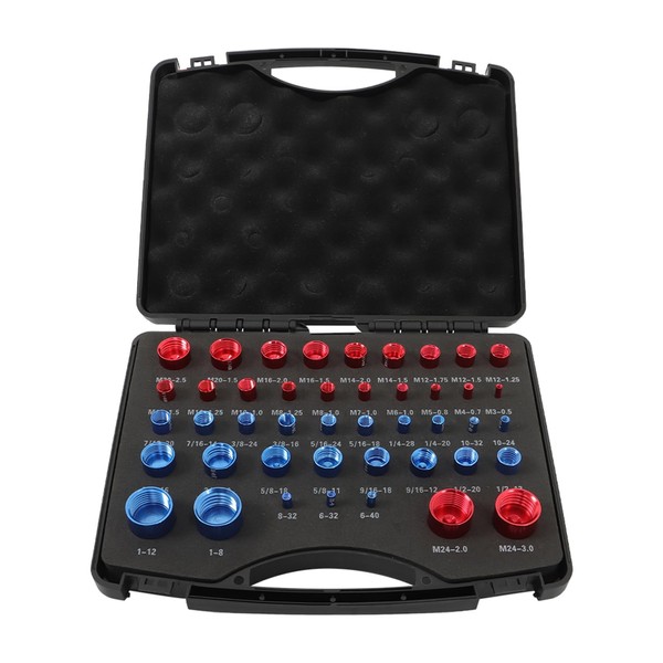 - 44pcs inch and metric threads, including 23 inch and 21 metric threads