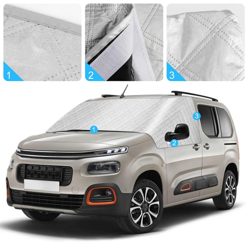 RASHION Windschutzscheiben Abdeckung Kompatibel mit Citroen Berlingo Peugeot Partner Opel Combo 2018-2025 - Externe Frontscheiben Sonnenschutz, Schnee Eisschutz Wrap Abdeckung