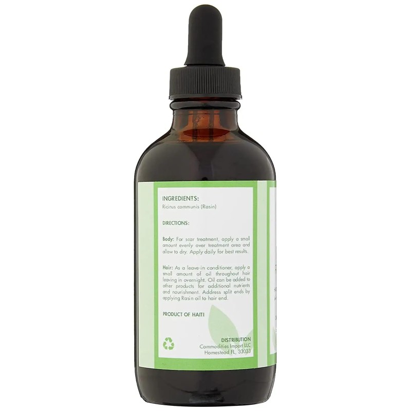 Rasin Castor Oil Organically Brilliant Haitian Black Castor Oil. (Original, 4 Fl Oz)
