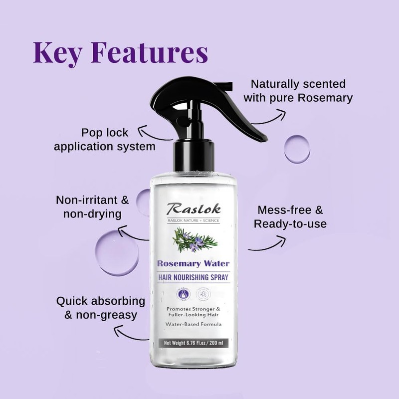 Raslok Nature+Science Rosemary Water Hair Spray | Nourishment for Fuller-Looking Hair | Made with 100% Natural Extracts | Lightweight, Non-Greasy Formula | 6.76 fl oz / 200 ml