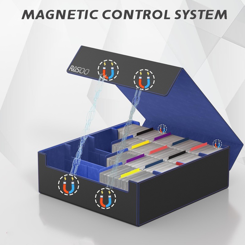 - Efficient Card Organization: The MTG deck box includes 24 dividers and 4 flannel card supports that attach to the columns, keeping your cards upright and neatly organized. With 4 top loader slots for displaying your favorite cards, the box also has a magnetic closure for secure sealing, allowing you to customize your storage setup while keeping everything safe and easily accessible.