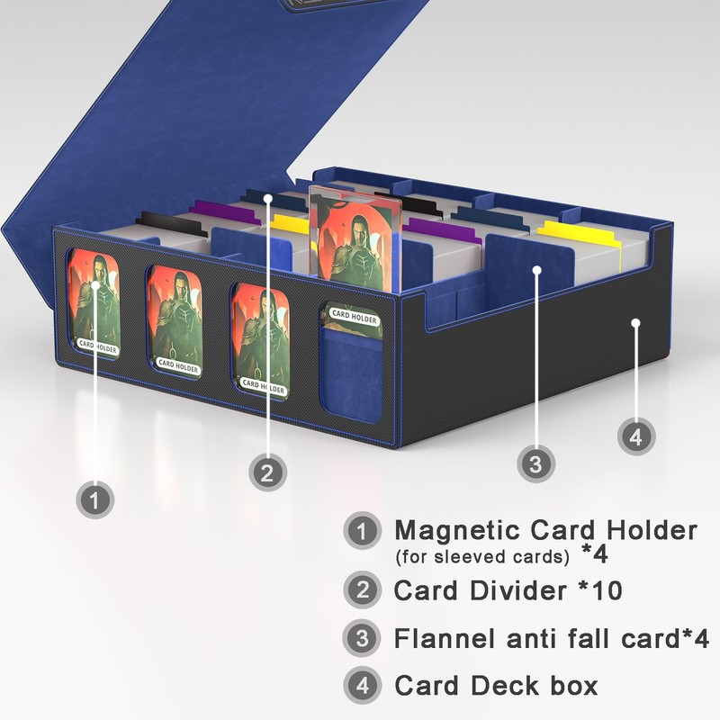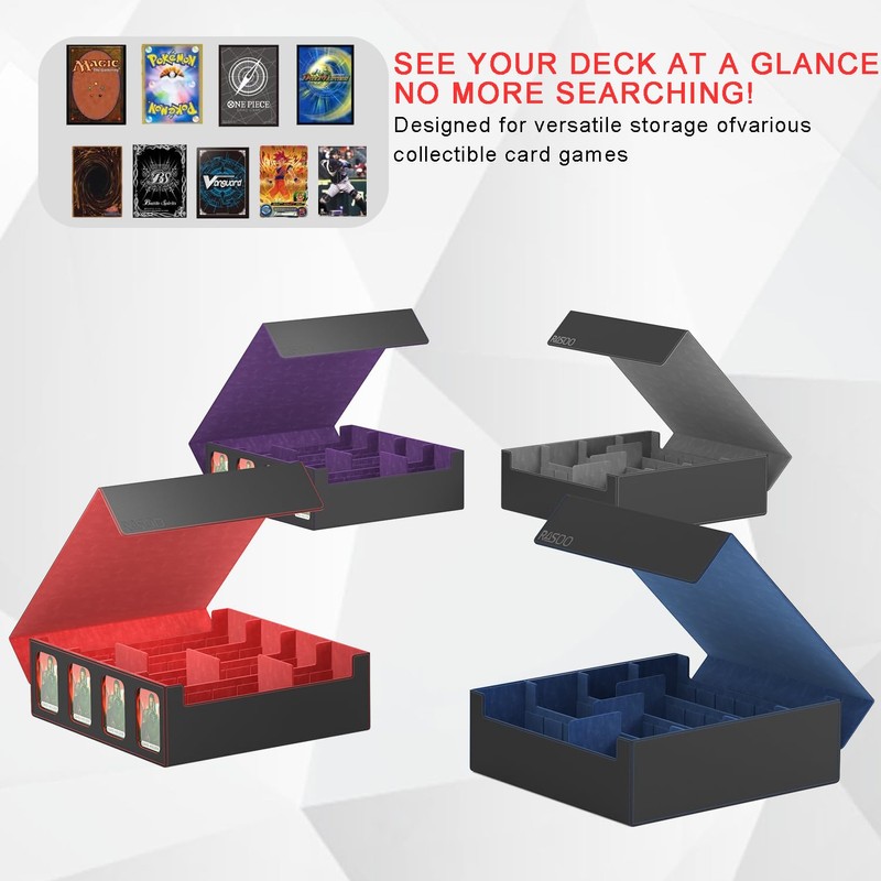 - Spacious Storage: The card box measures 11.81x13.15x4.33inches, Our mtg deck box holds over 3,200 unsleeved cards, offering plenty of room to store and organize your card collection with ease. Whether you're a casual collector or a dedicated enthusiast, the large capacity ensures you can keep your cards neatly arranged and accessible, making it easier to browse, display, or prepare for trading events.