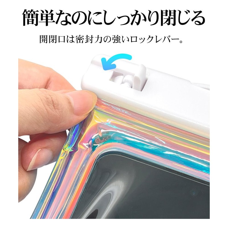 - (Strong and Secure Seal) The opening opening is closed with a strong sealing force locking lever. (*In case that the product is not sufficiently closed, there is a chance of water entering the waterproof case. Please make sure to close tightly before use. )