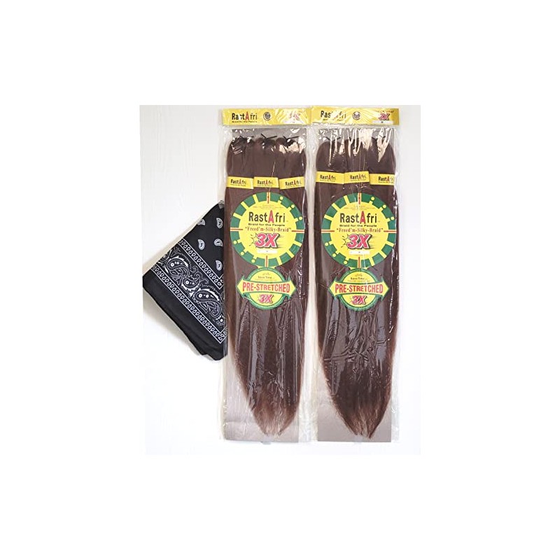 RastAfri Pre-Stretched Silky Braiding Hair 3X with Bandana - 2 Packs (#30)