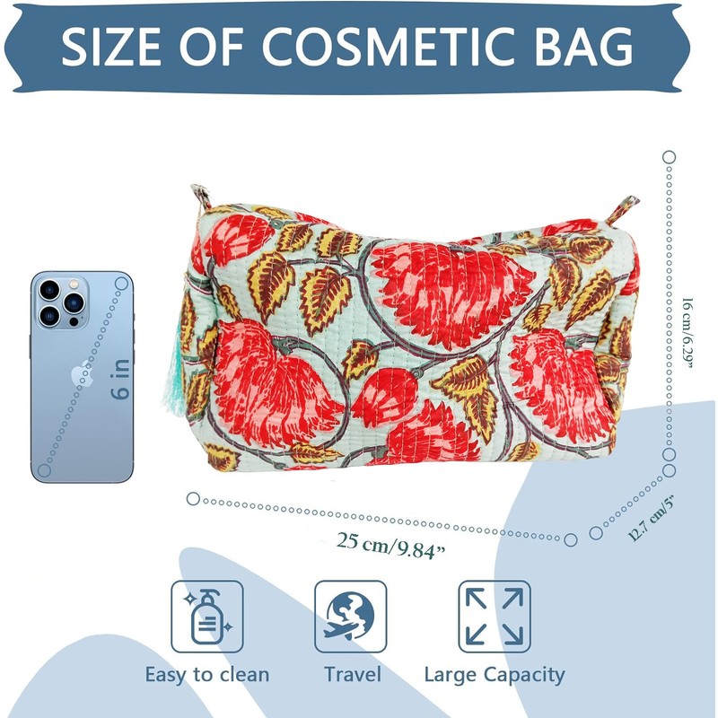 - Cute Makeup Bag: The Quilted Cotton Makeup Bag Is Made Of High-Quality Cotton, Which Is Lightweight, Portable And Good In Texture, Durable To Use. This Cute Floral Cosmetic Bag Features A Floral Pattern Design, Fashionable And Skin-Friendly, Comfortable To The Touch. The Stylish Design Makes These Makeup Bags A Fashionable Accessory, Suitable For Both Your Everyday Makeup Routine And Special Occasions, Allowing You To Showcase Your Personal Style.