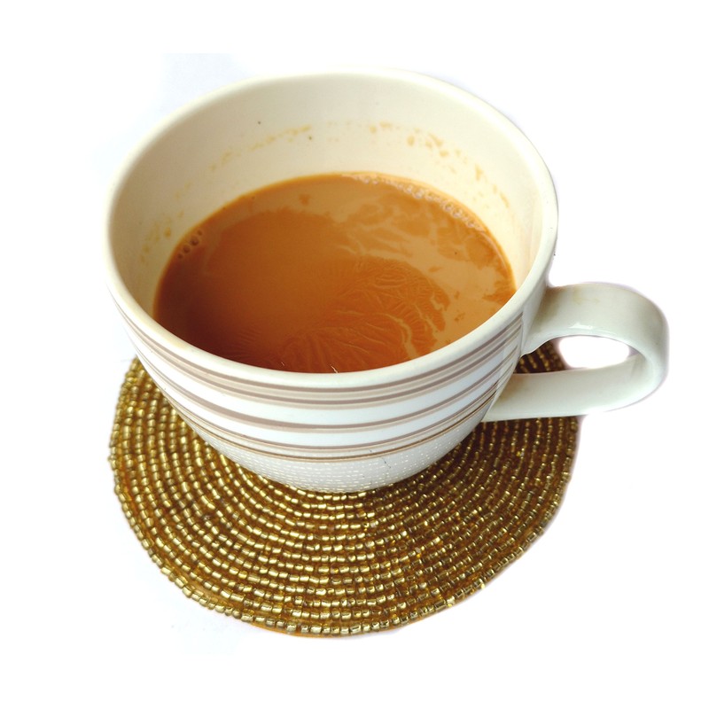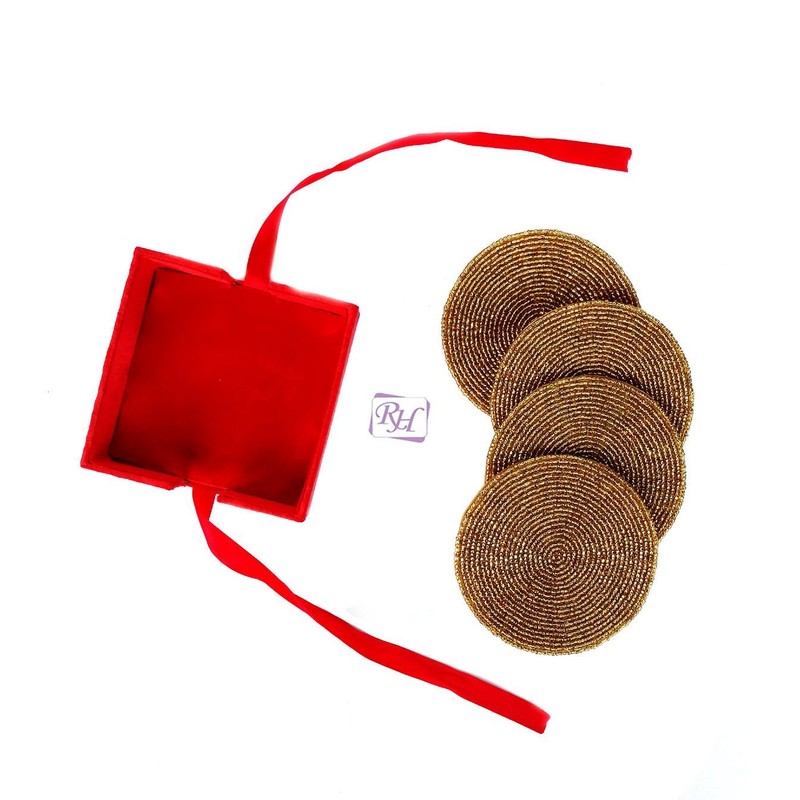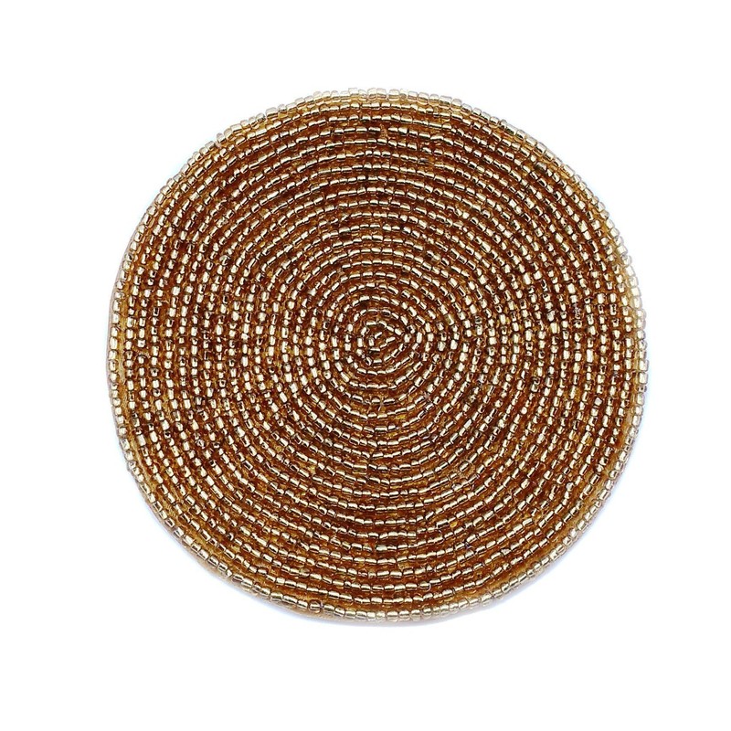 Rastogi Handicrafts Golden Plain Decor Indian Handmade Beaded Coffee Tea Placemat 10 cm Set of 4