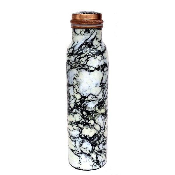 Rastogi Handicrafts Pure Copper Water Bottle Screen Printed 950ml B&W Print