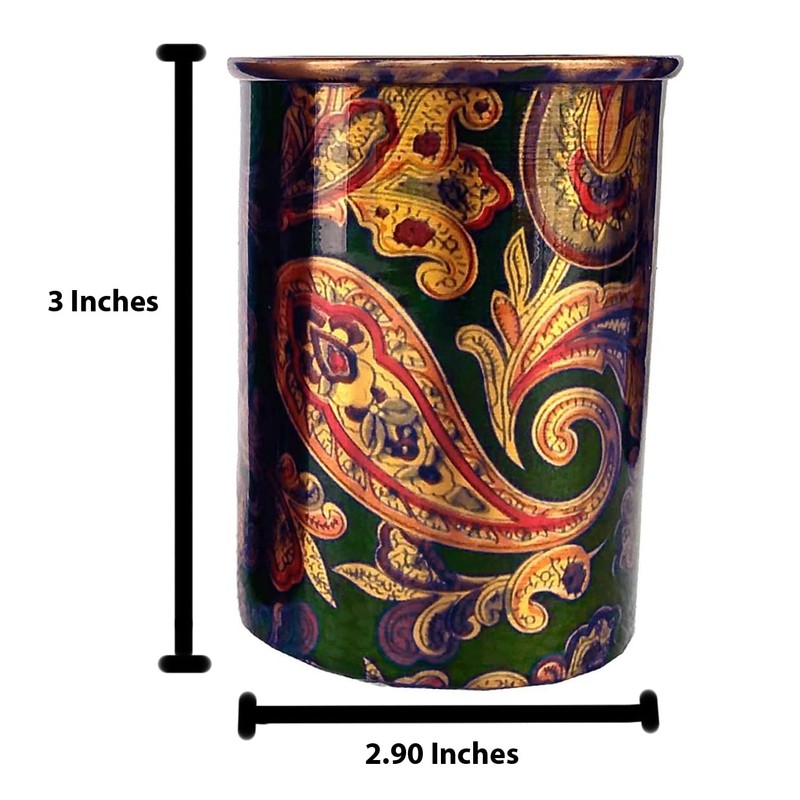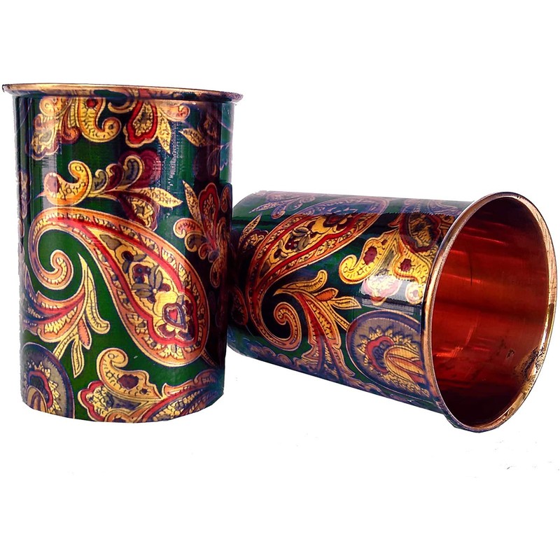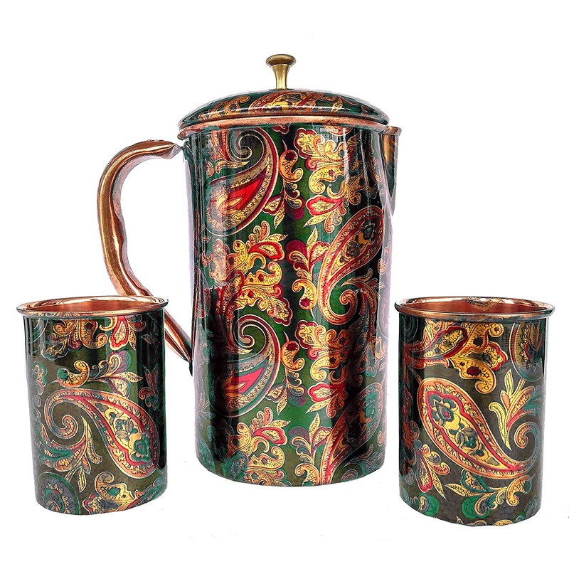 Rastogi Handicrafts Solid Copper Screen Printed Jug and 2 Tumblers Set 1 Pitcher 2 Tumbler