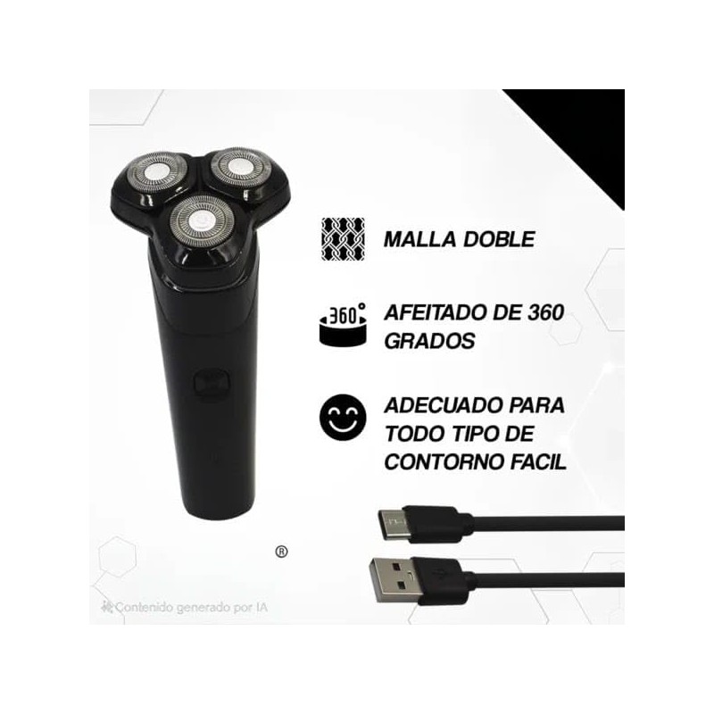 Rasuradora Eléctrica, 3 Cabezales Independientes, 360 Grados, Recargable USB, Negro