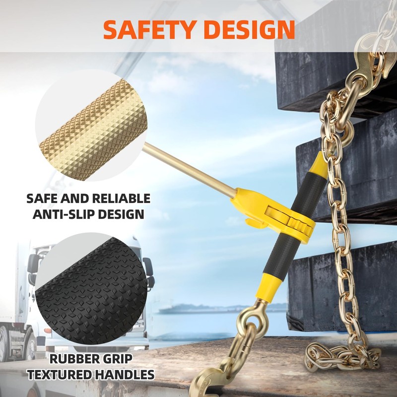 The binder handles feature a non-slip design, ensuring a firm grip even in wet or greasy environments. This enhances operational safety and efficiency, allowing you to work confidently under various conditions. The 5/16 chain binders ratcheting feature ensures secure handling every time.