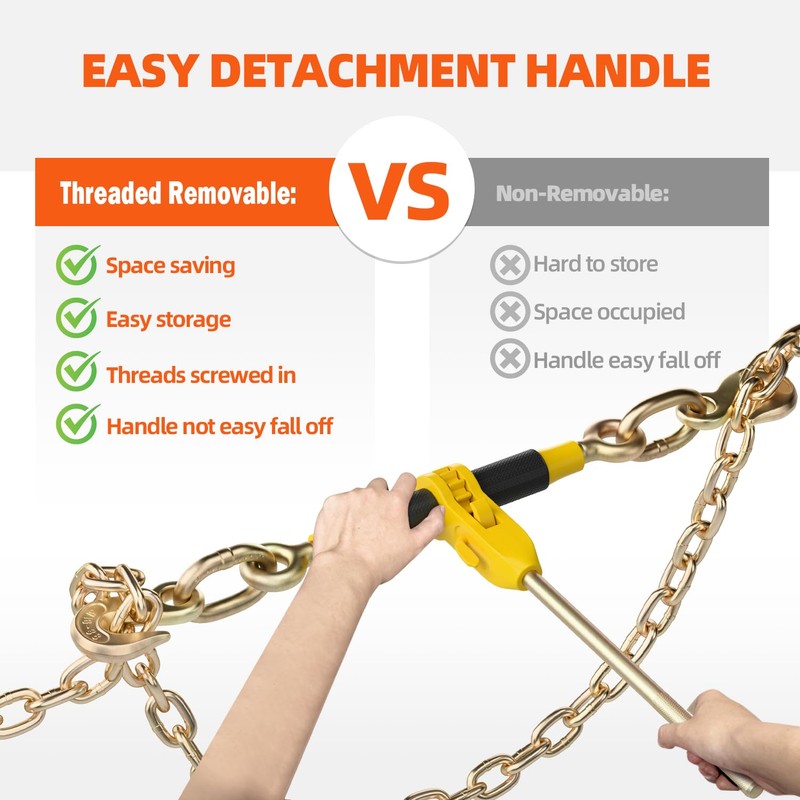 - 【Detachable Handle Design】The chain binder features a detachable handle, making it easy to store and saving space. This convenience is ideal for quick disassembly and efficient storage. The connection of binder handle uses a threaded design to ensure the handle stays securely in place, preventing accidental detachment and enhancing safety during use.