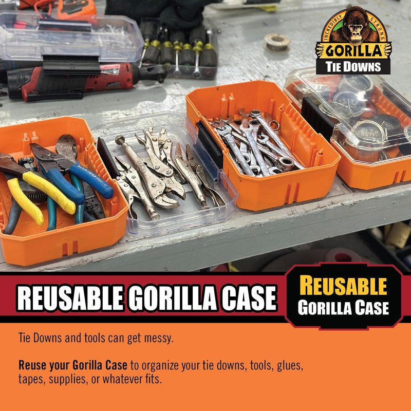 - REUSABLE STORAGE CASE: Each 2-pack of Gorilla 93003 Ratchet Straps comes with a reusable storage case for convenient organization and transportation, keeping your straps tidy and ready for use.