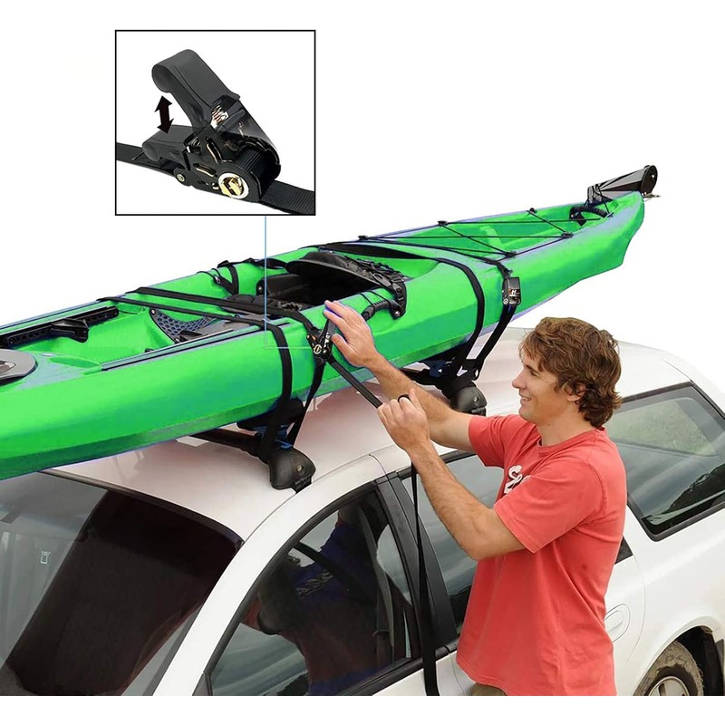 - Used for car roof rack cargo tie down, kayak, cargo, surfboard tie down, boat trailer tow strap, luggage strap, joining beds, canoes, car roof strap for roof top carrier and more.