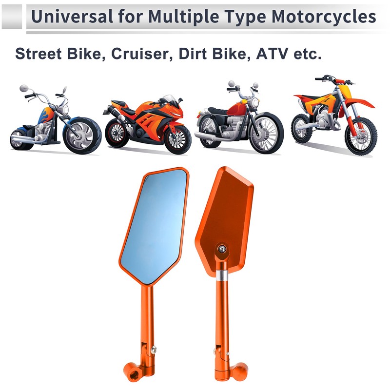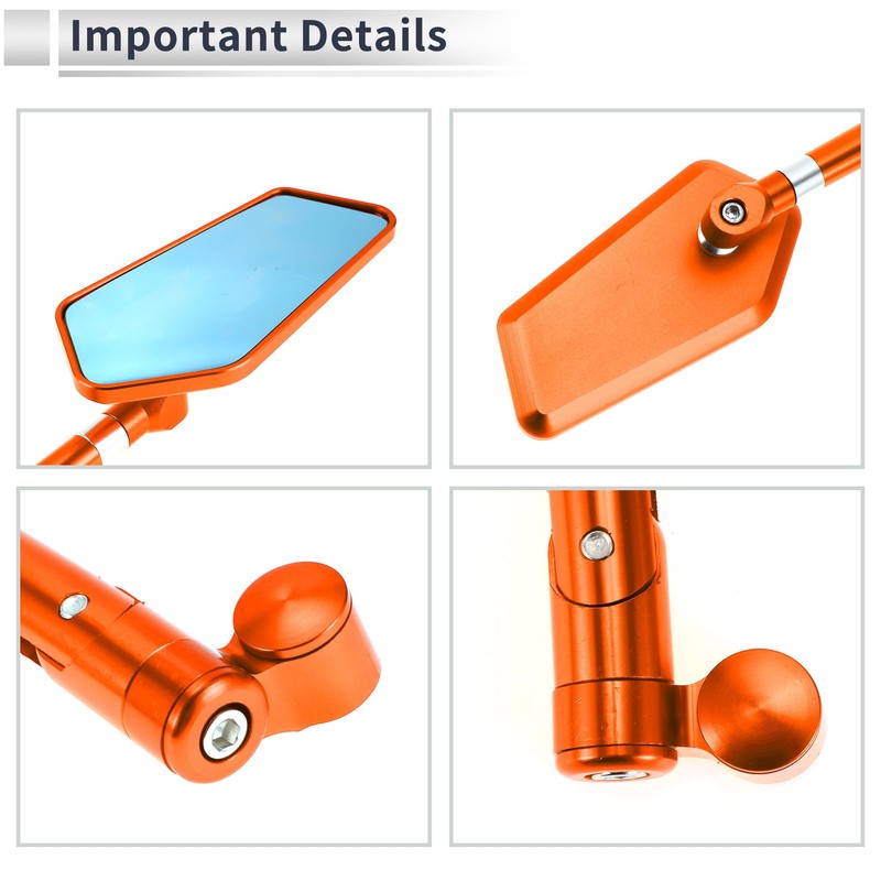 RATCHROLL 1 Set Universal Motorcycle Rear View Mirrors Adjustable Bar End Side Mirrors Mount M8/M10 Orange Aluminum Alloy Prismatic Shape