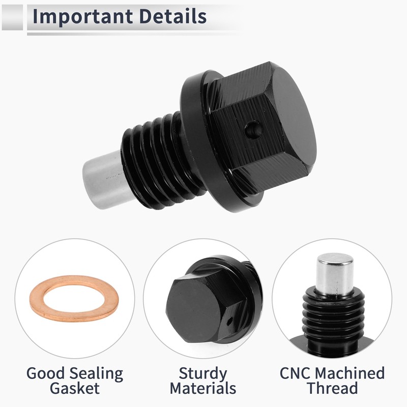 RATCHROLL 1 Set Universal Oil Drain Plug Anti Leakage Oil Pan Drain Bolt Screw Thread Repair with Gasket Magnetic Black Aluminum Alloy Copper M12x1.5