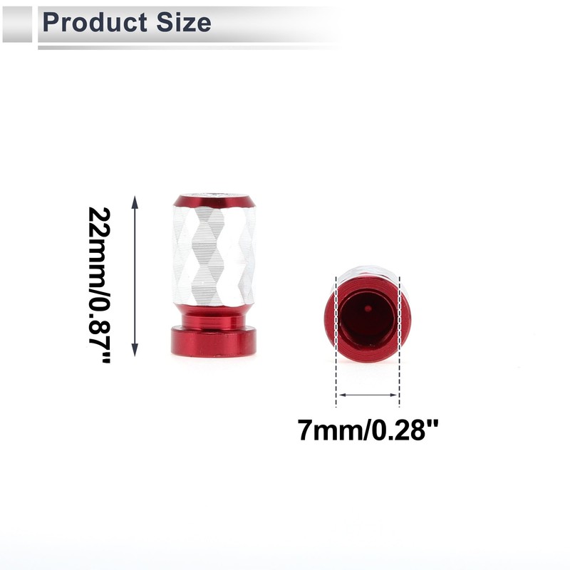 RATCHROLL 4 Pcs Tire Valve Stem Caps Decorative 7x22mm Tyre Valve Dust Covers Diamond Pattern Red Aluminum Alloy