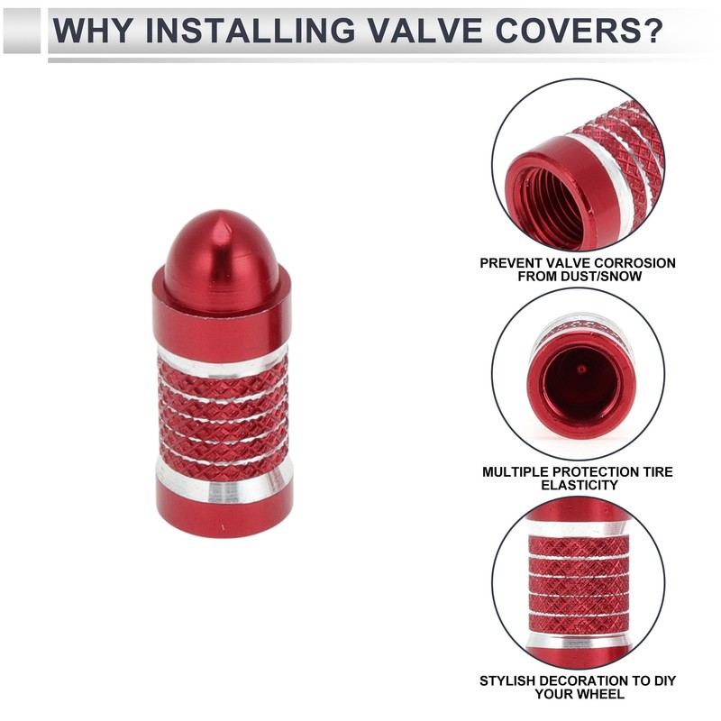 Tire valve dust caps adopt with durable leakproof Aluminum Alloy material, wear resistant, anti crash/rust, moisture resistance. Great help to protect the valve stem threads.