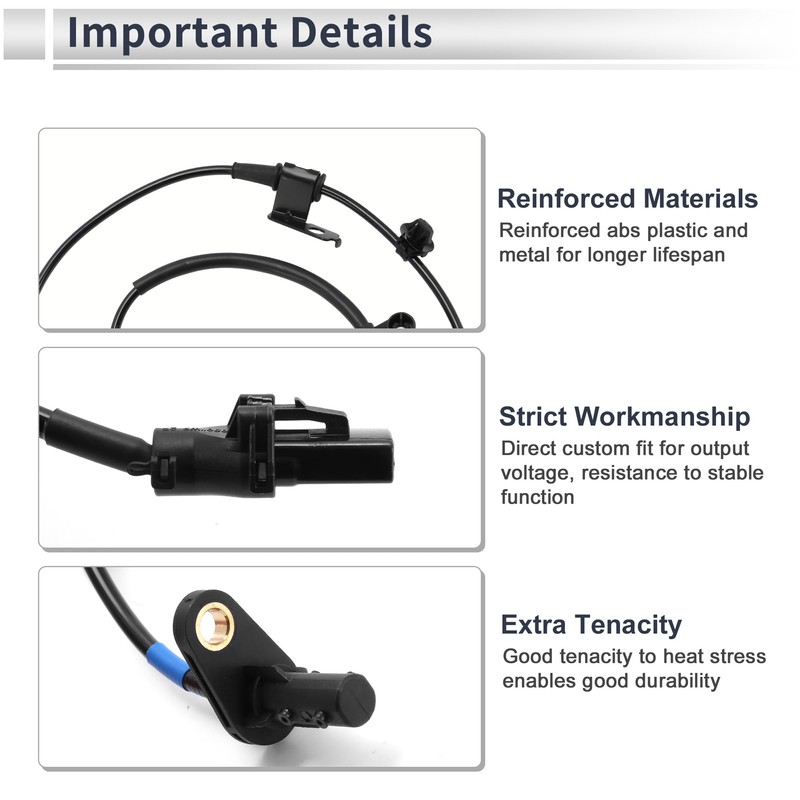 • Product Characteristics: Our reinforced wheel speed sensor will keep your car from skidding or sliding when you brake suddenly. You will get accurate and rapid signal measurement of wheel speeds to optimal braking performance.