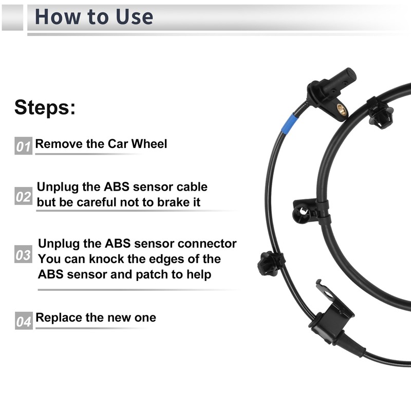 • Easy / Professional Installation: Easy Installation.Remove the car wheel, unplug the ABS sensor and sensor connector, then replace the new abs sensor.