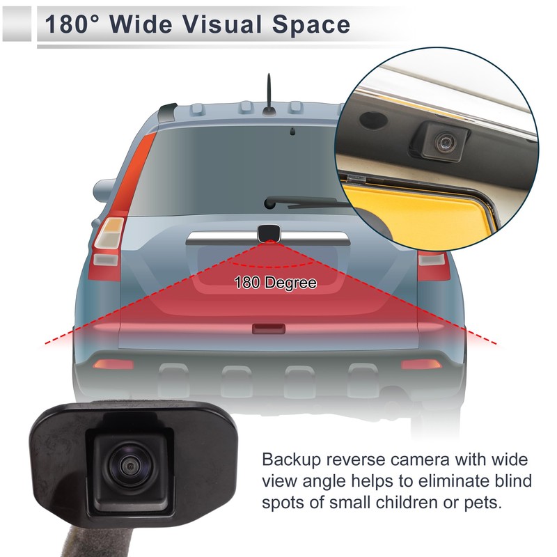 • Functionality:There're anti-fog HD glass and color CMOS image sensors inside this rear view camera so as to provide satisfactory color reproduction and a clear view for car owners. The visual space is 120-180 Degree. It's waterproof for all weather.
