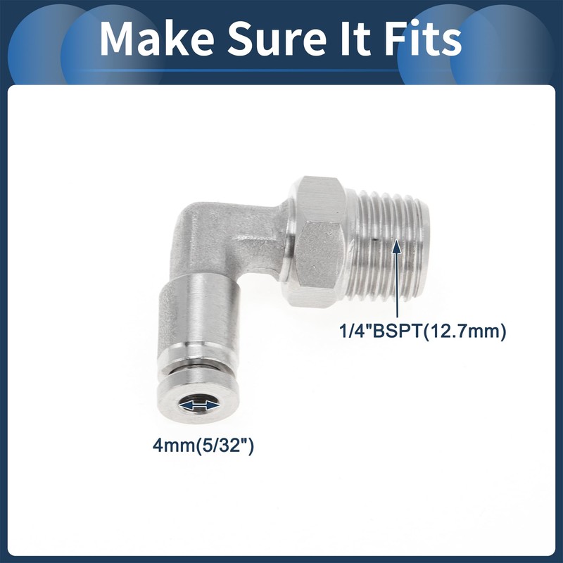 RATCHROLL Push to Connect Air Fittings 5/32" 90 Degree Air Line Quick Joint 304 Stainless Steel 1/4"BSPT 2 Pcs Silver Tone