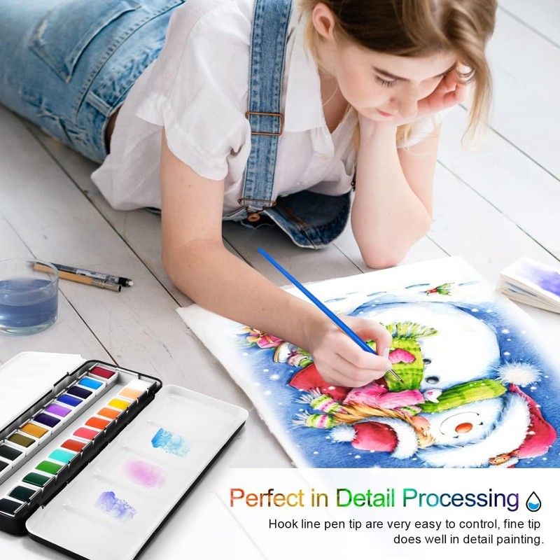- PREMIUM GRADE - (SAFE AND NON-TOXIC): High quality non-toxic solid pigment. Fine pigment powder makes them easily soluble in water. Suitable for children over 3 years old and adults. Perfect Christmas/birthday/Christmas gift for boys and girls, best choice to promote a passion for crafts for children. Bring this watercolour paint box and paint in suburbs on weekends. Enjoy a happy parent-child time!