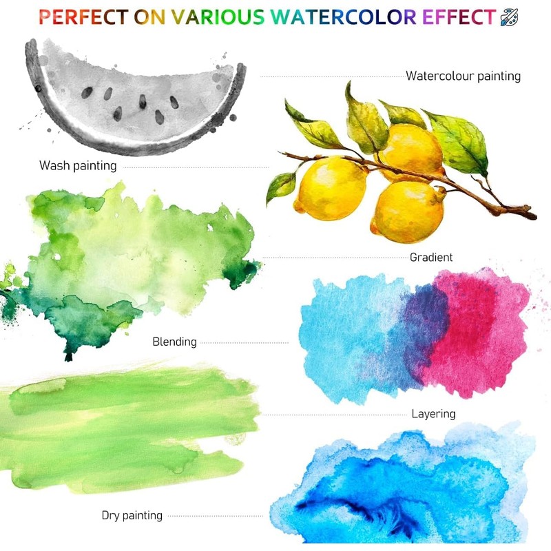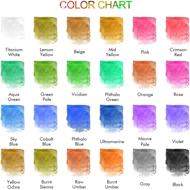 - Highly pigmented superior resistance: the powder has made our solid watercolour paints durable thanks to finely ground, increased concentration and pressing and does not crack. With high transparency and a natural bloom in your painting paper. And they don't feel chalky or grainy after drying. They are easy to mix and dry quickly, are fade-resistant and have an excellent liquid.