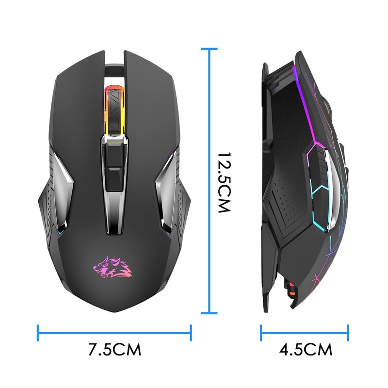 Ratón inalámbrico para juegos recargable con retroiluminación Rainbow RGB, sensor óptico de 3 niveles DPI, ratón ergonómico para PC de alto rendimiento con 8 botones para Windows 7/8/10/XP Vista (negro)