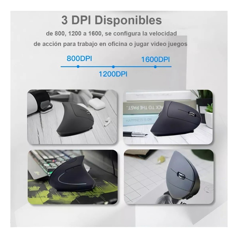 Ratón vertical inalámbrico ergonómico recargable 2,4 g negro