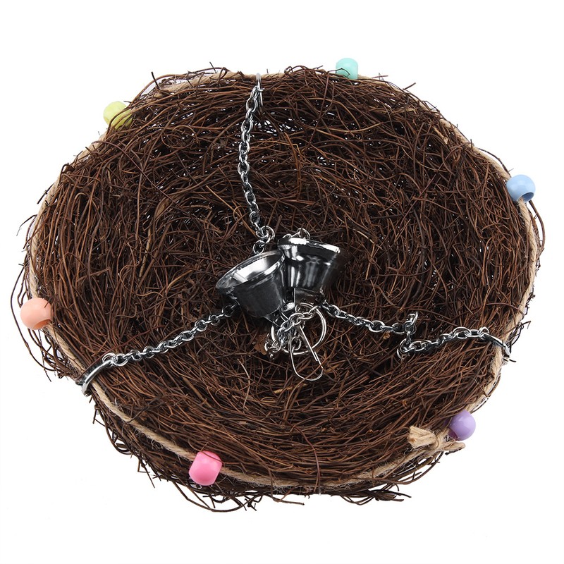Rattan Birds Parrot Straw Nest Swing Hanging Toy with Bells Toys (27 x 20cm)