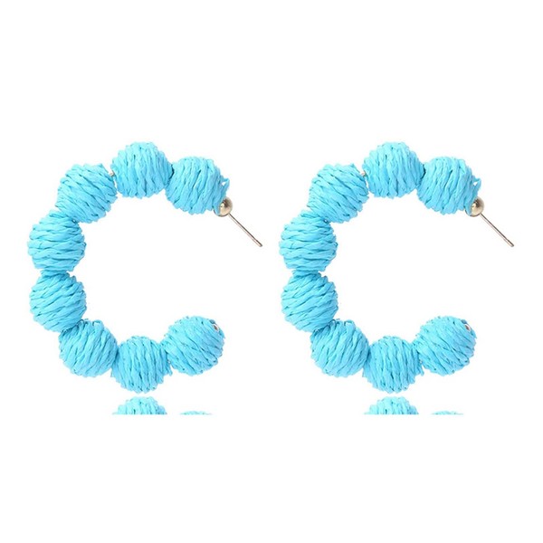 Rattan Earrings Statement Raffia Handmade Braid Straw Earrings Circle Hoop Earring Summer Beach Accessory (Blue)