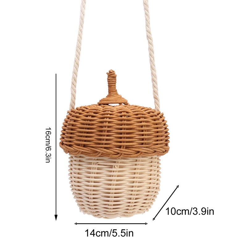 - HOME DECORATION: Acorn shaped rattan basket not only has storage function, but also a great decoration for your home, party, wedding. The small basket has a rope, you can hanging it at home or go out and carry it on your back.