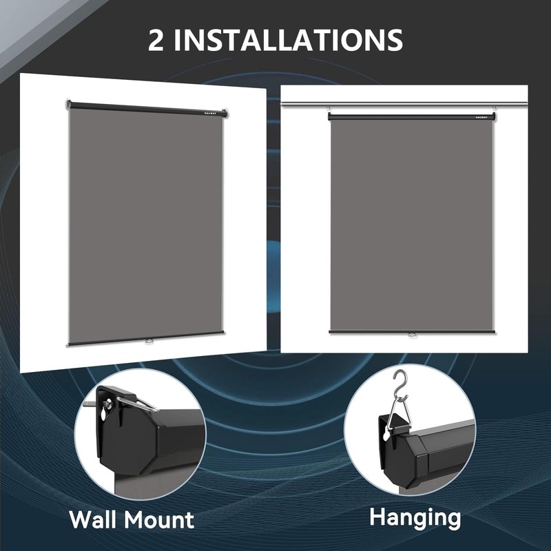 - 🩶【2 Installations】Our retractable pull down grey screen offers two installation methods: wall hanging and hanging, providing you with the flexibility to choose the option that best fits your needs.