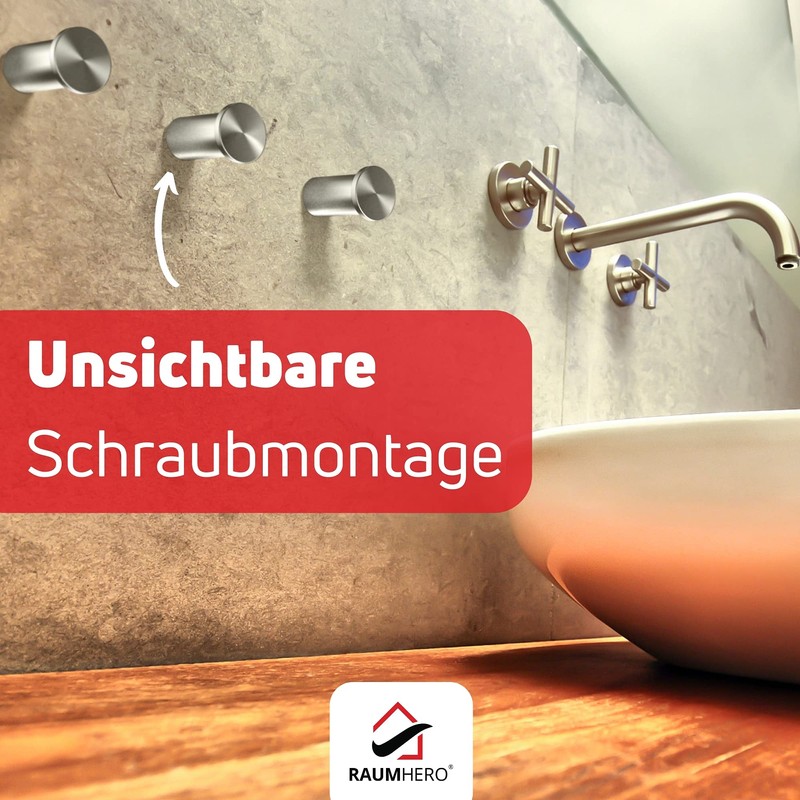 Raumhero® Coat Hooks (4 Pieces) – Coat Hooks Stainless Steel Towel Hooks for Drilling – 100% Made in Germany (Load Capacity up to 30 kg) – Extremely Versatile (Including Screws, Dowels & Instructions)