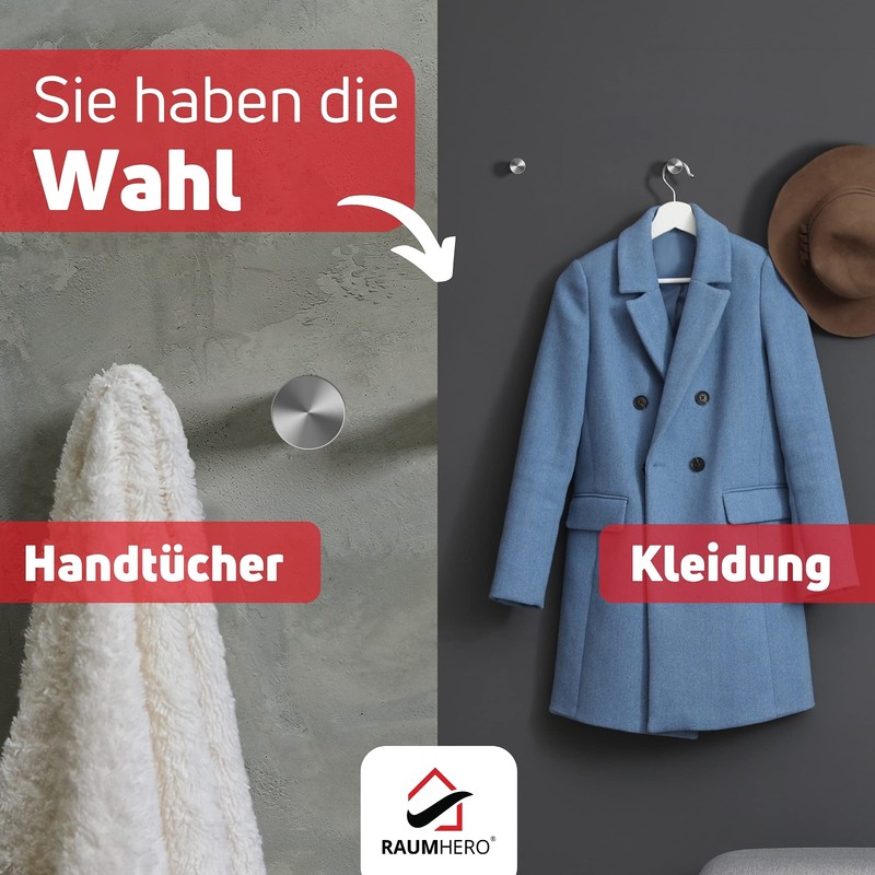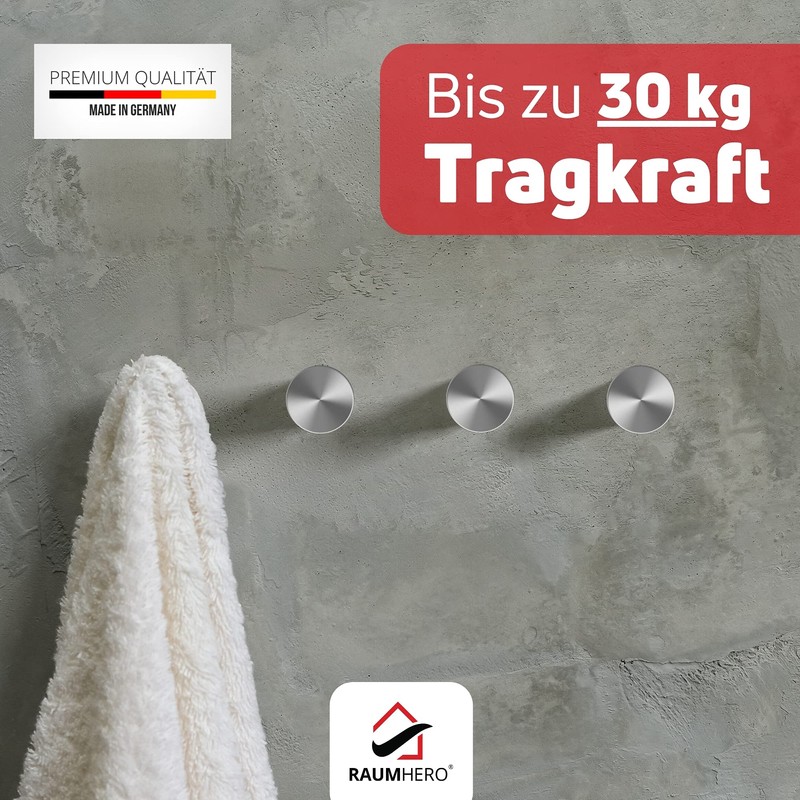 • Up to 30 kg load capacity – the coat hooks from Raumhero make the difference. Ideal as a coat hook, coat hook, towel hook, hat hook, jacket hook up to 30 kg load capacity. See for yourself.