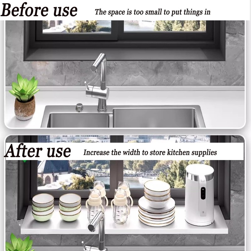 - Multi-purpose Use:These window sill extender plate seems well built are suitable for kitchen, bathroom, office, garage, workbench, living room or balcony, providing extra storage space, reducing clutter and making your home appear more organized and spacious.