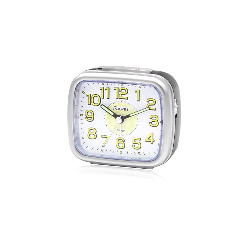 - Ravel's midi sized alarm clock features a clear white dial with luminous numbers and inner ring, ideal for viewing at night. Fitted with a beep alarm with crescendo, it is ideal for bedside table's, desk's and mantel pieces.