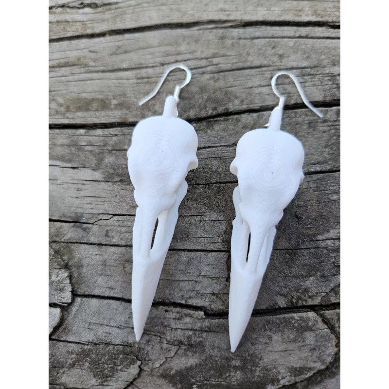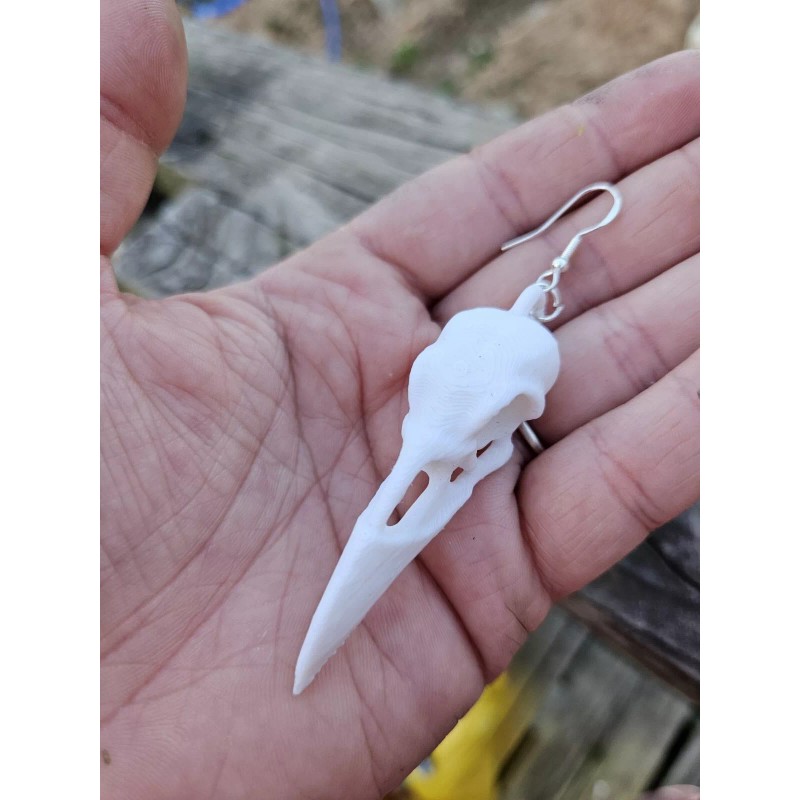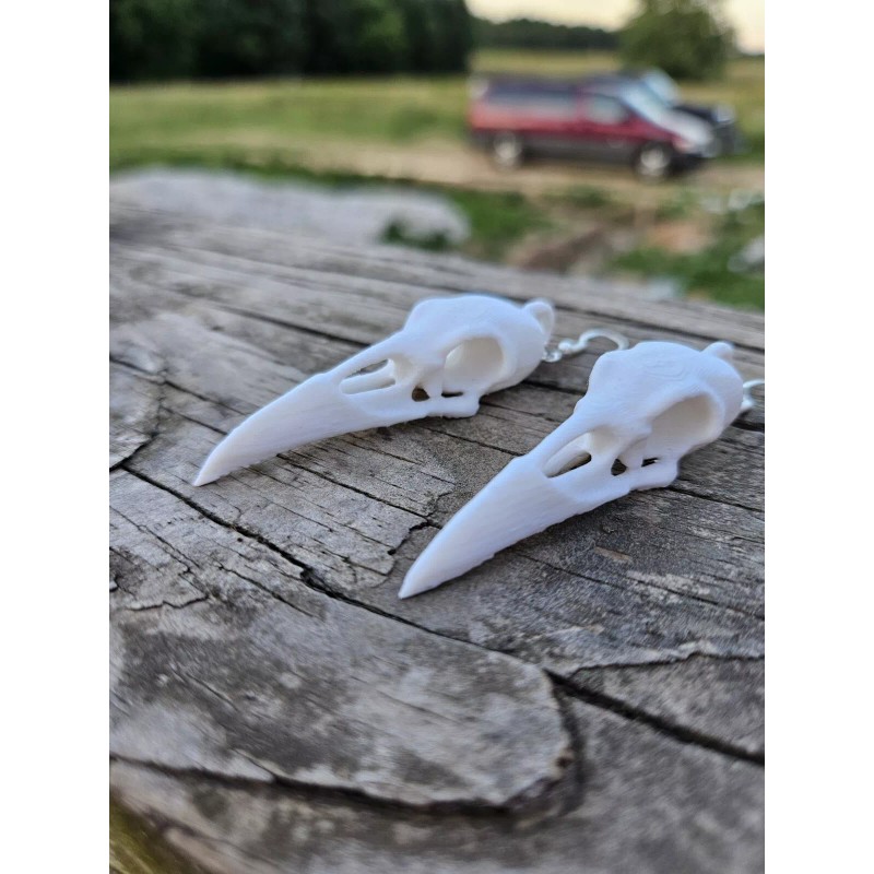 This listing is for a pair of handmade raven Skull earrings. They are 3d printed, which makes them lightweight, and the earring wire itself is hypoallergenic.