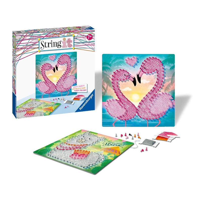 Ravensburger 18120 String it Midi Creative Thread Pictures with Trendy Llama and Flamingo Made of Plastic Pins and Colourful Thread, White