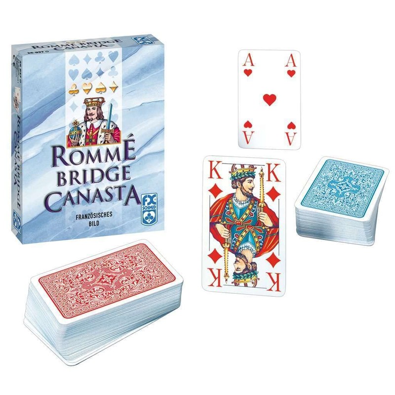 - The set contains 2 x 55 playing cards with instructions for the card game classics Rummy and Canasta