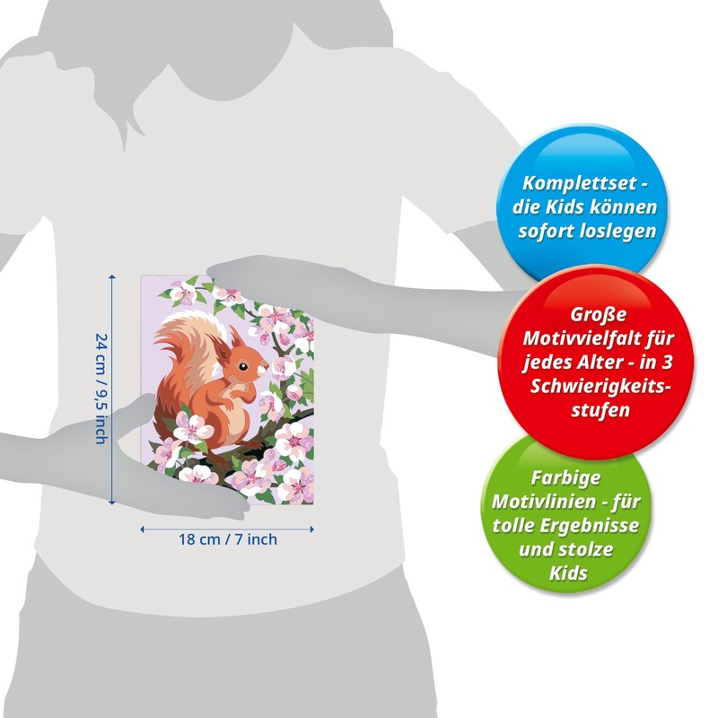 - Great colouring fun with children's favourite motifs: the cute squirrel makes children's eyes light up and is therefore the ideal gift for small and large artists