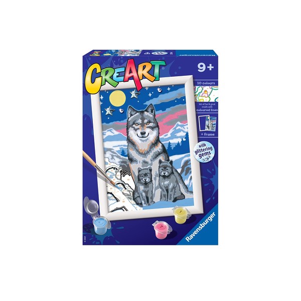 Ravensburger - CreArt E Series Wolves in Moonlight Painting Kit by Numbers Includes a Pre-Printed Board, Brush, Paints and Accessories, Creative Game for Boys and Girls 9+ Years