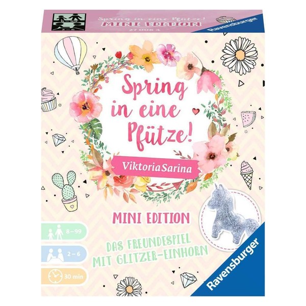 Ravensburger Family Game - “Spring in einer Pfütze” (Jump into a puddle) - Mini Edition 27006 - Game for Children from 8 Years with Glitter Unicorn (German language)